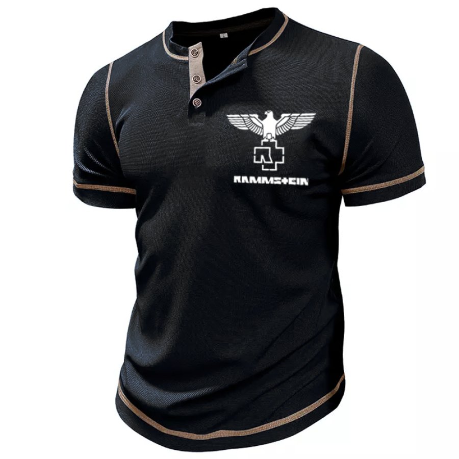 t-shirts,men's rammstein printed henry short sleeve t-shirt