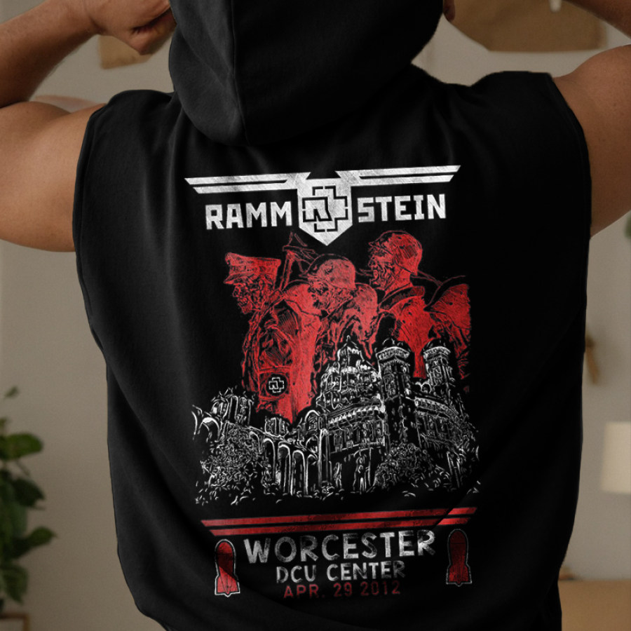 tank top,men's rammstein vintage pattern print sleeveless hooded tank top