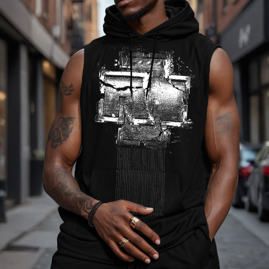 Men's Rammstein Vintage Pattern Print Sleeveless Hooded Tank Top