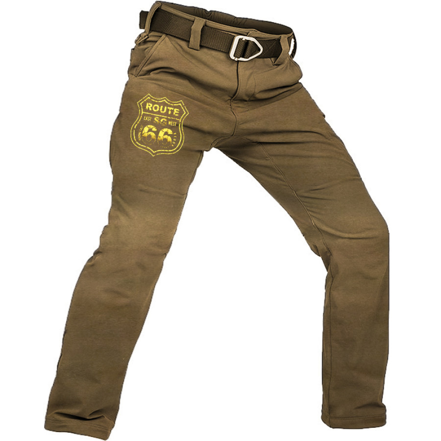 Men's Retro And Distressed Route 66 Long Workwear Training Pants