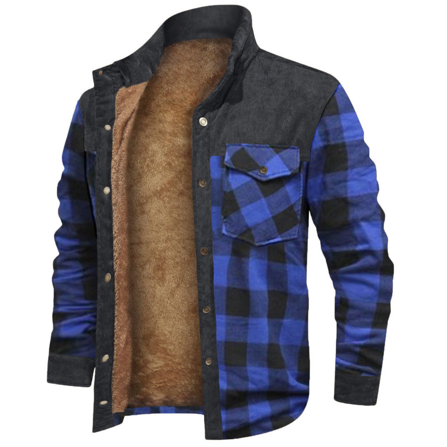 shirt jacs,men's retro check stitching fleece warm shirt jacket wanderer jacket