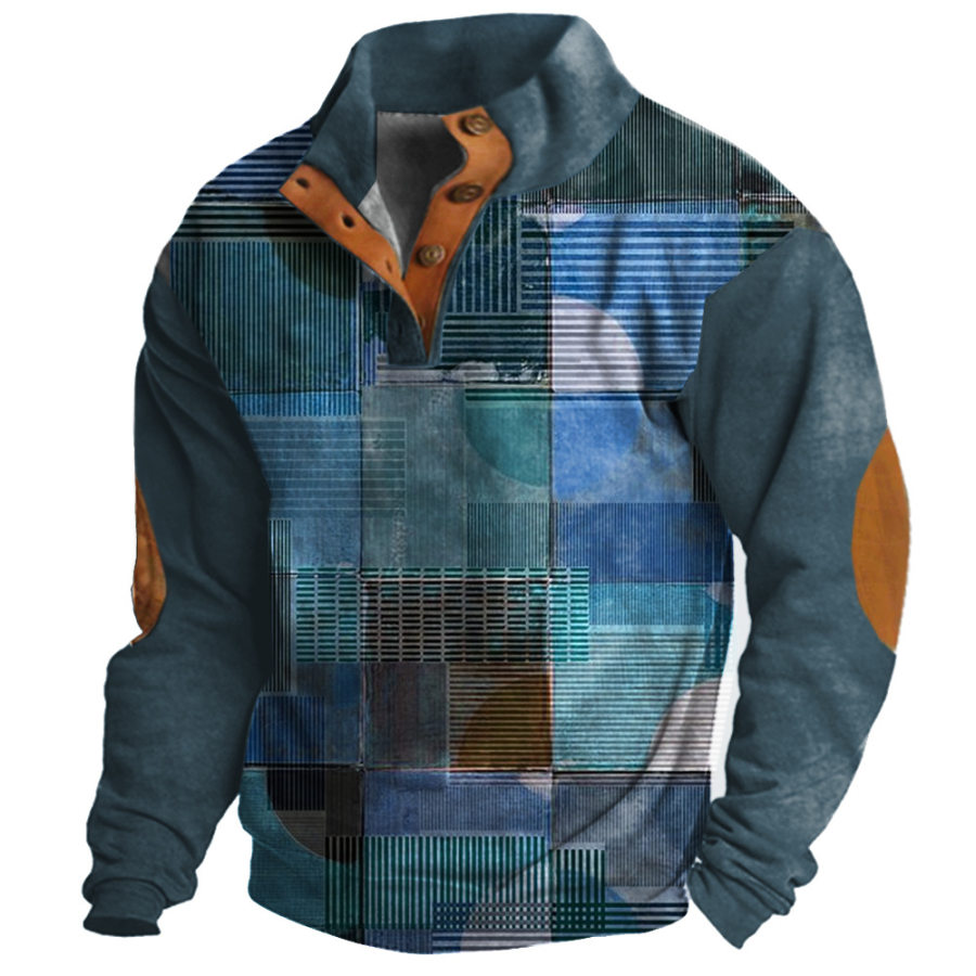 Men's Retro Color Block Printed Button Lapel Sweatshirt