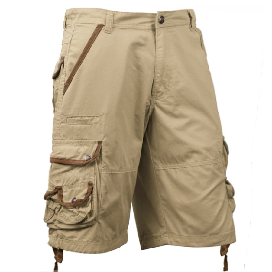 tactical shorts,men's retro color contrast multi-pocket tactical cargo shorts
