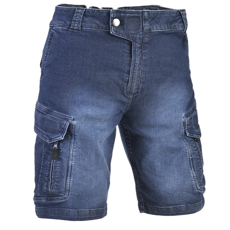 Men's Retro Denim Multifunctional Zipper Utility Cargo Tactical Shorts