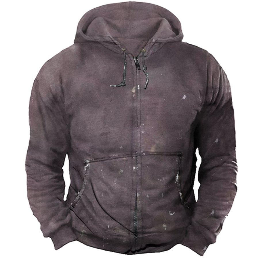 Men's Retro Ink Splash Full Zip Hooded Jacket