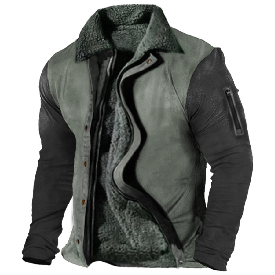 Men's Retro Lining Plus Fleece Zipper Tactical Jacket