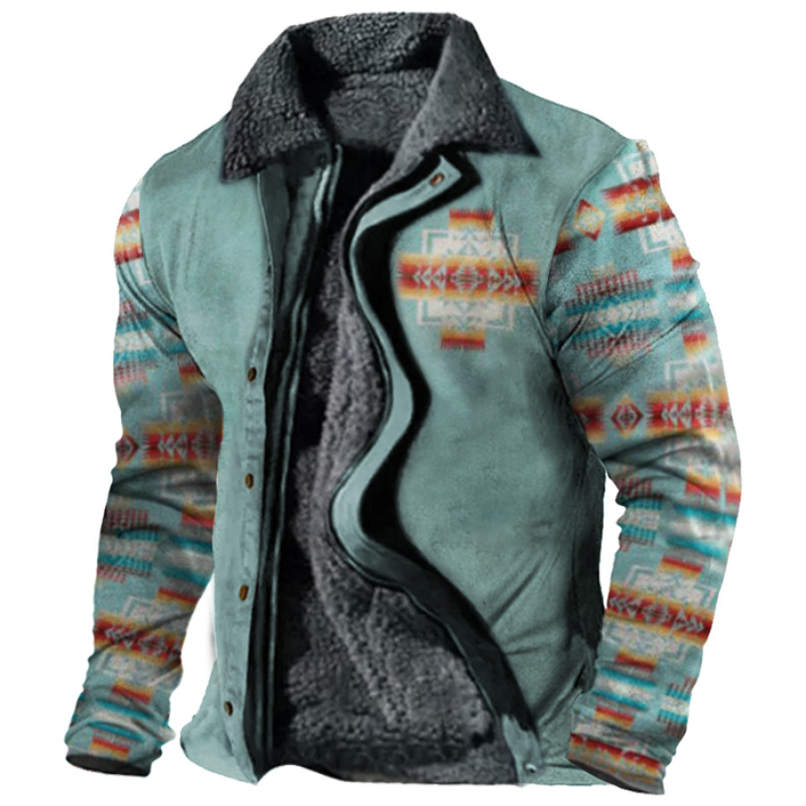 Men's Retro Lining Plus Fleece Zipper Tactical Print Jacket