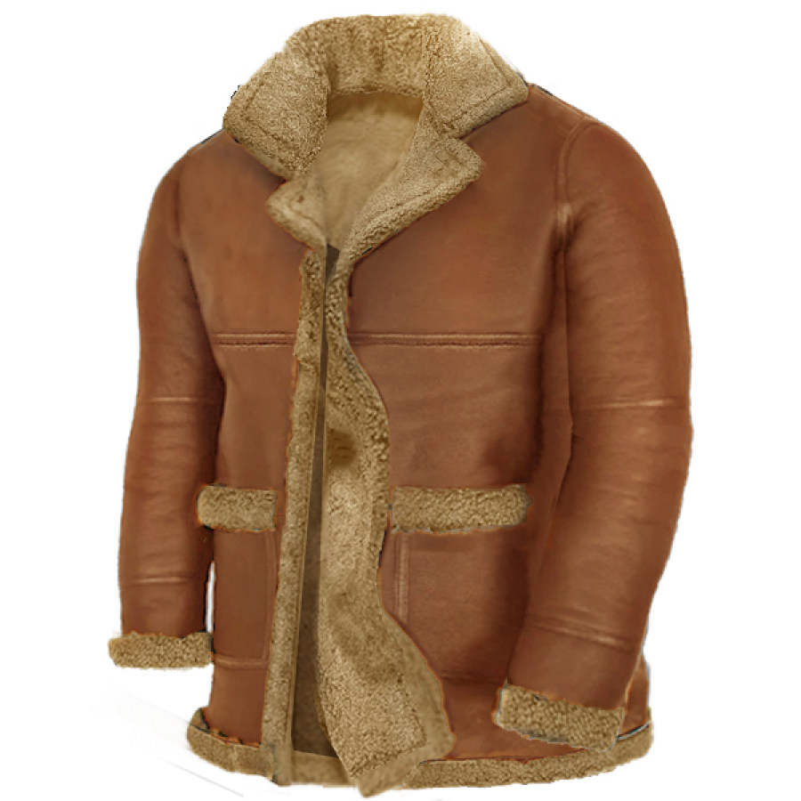 Men's Retro Lining Plus Fleece Zipper Tactical Suede Jacket
