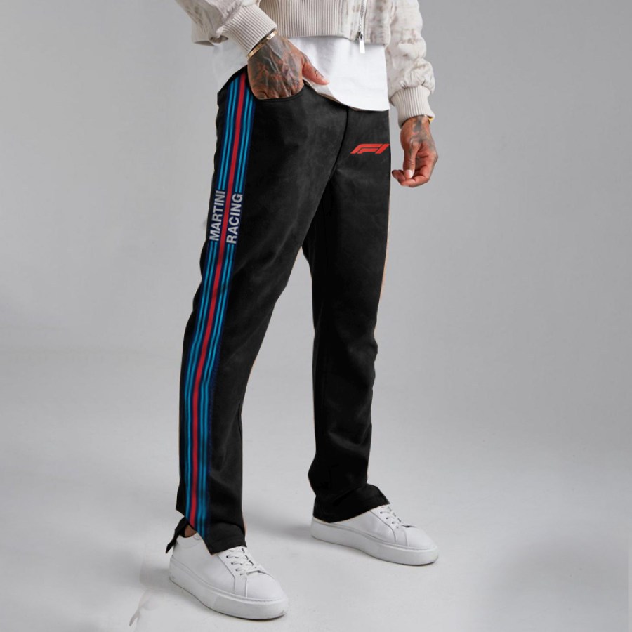 Men's Retro Racing Loose Casual Fleece Sweatpants Black