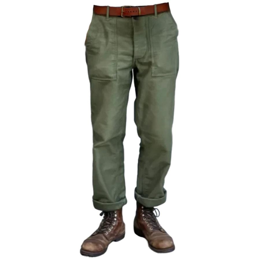 Men's Retro Simple Pocket Button Cargo Casual Pants Army Green