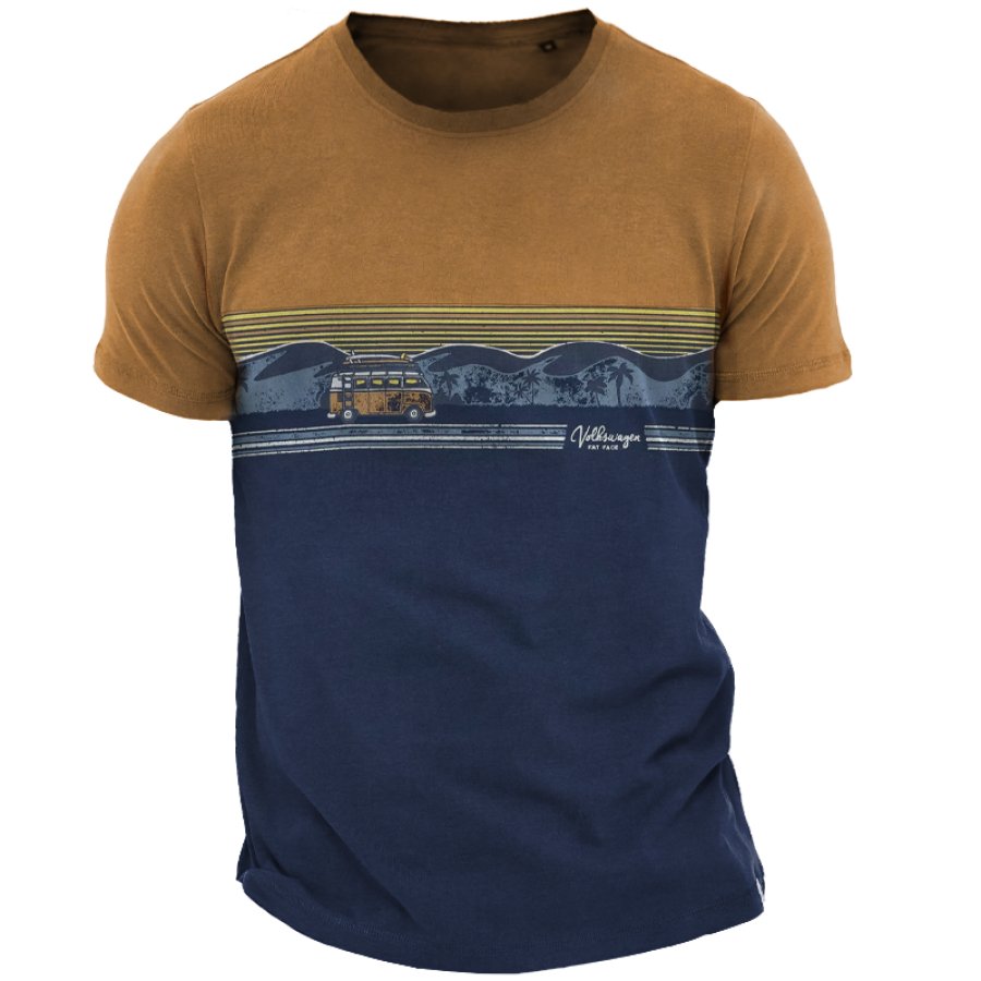 Men's Retro Surf Color Block Print Crew Neck T-Shirt