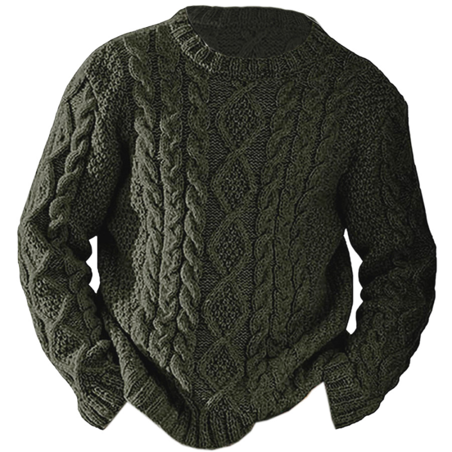 Men's Retro Twist Solid Color Round Neck Long Sleeve Knit Sweater