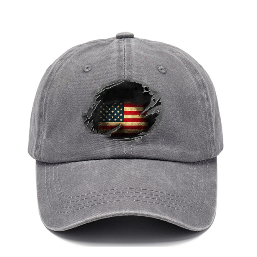 Men's Ripped American Flag Print Washed Cotton Sun Hat