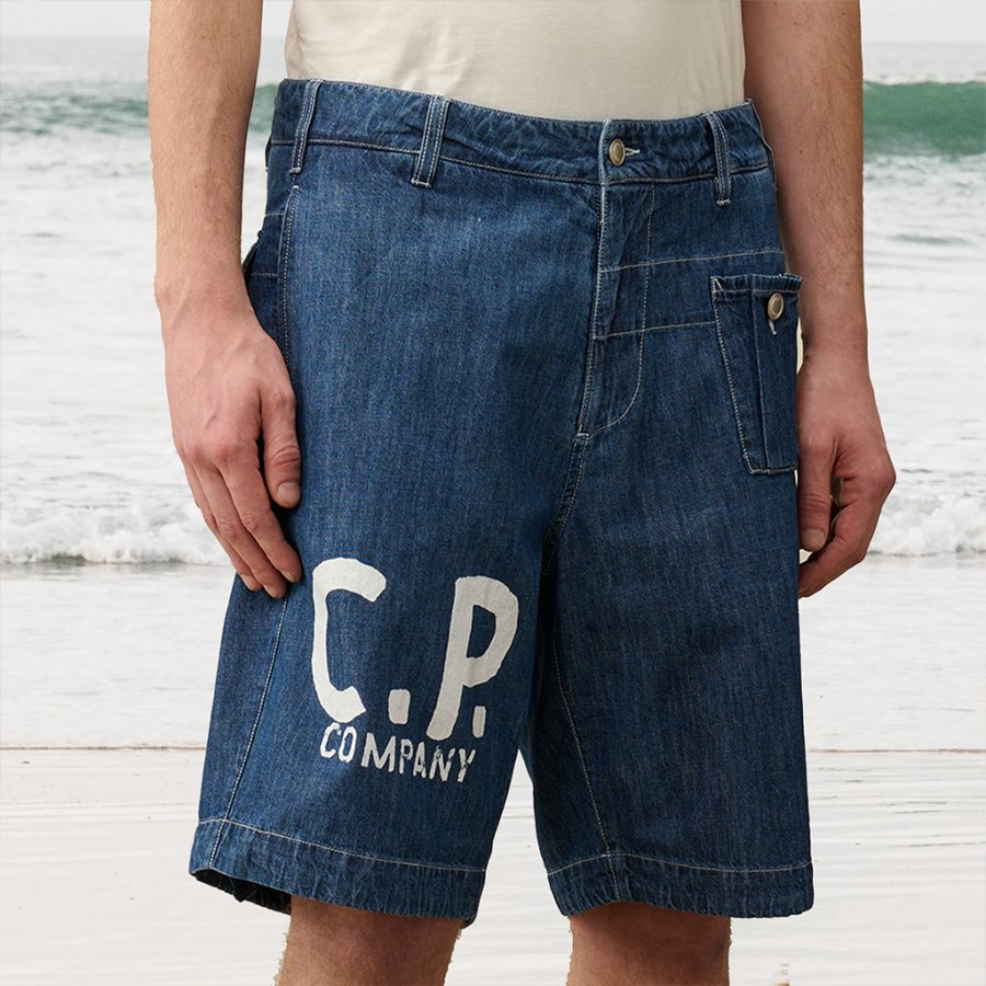 Men's Shorts CP COMPANY Printed Shorts Surf Beach Denim Shorts Daily Casual