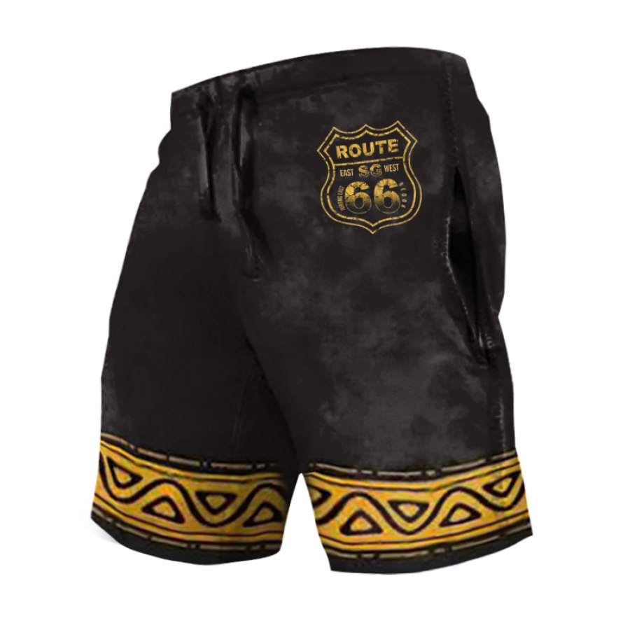 Men's Shorts Route 66 Ethnic Print Pattern Retro Casual Drawstring Pocket 5 Inch Shorts