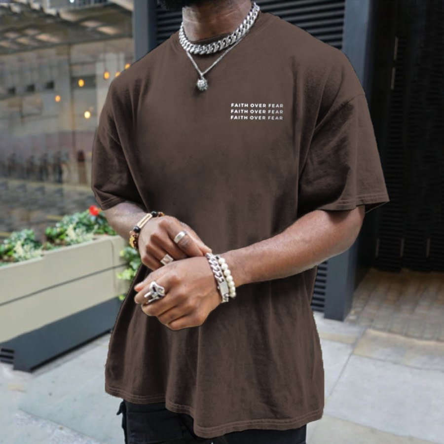 Men's Simple "FAITH OVER FEAR" Print Crew Tee