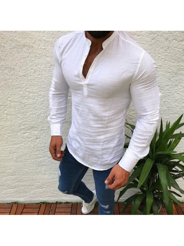 Men's Solid Color Long Sleeve Casual Linen Shirt