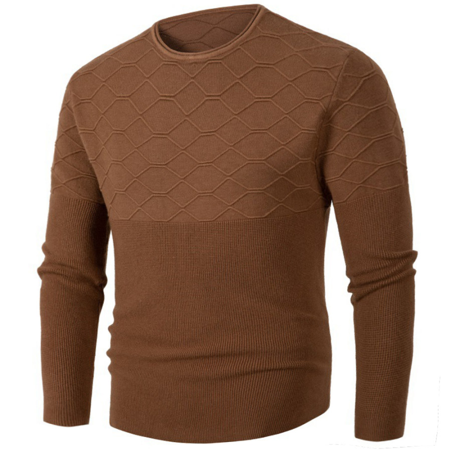 Men's Solid Twist Round Neck Knit Sweater