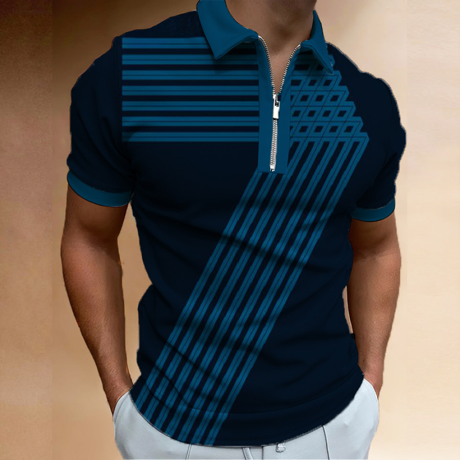 Men's Striped Print Polo Shirt