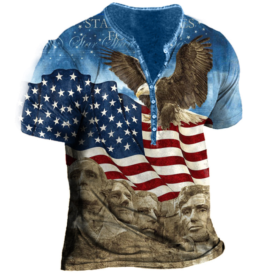 tees & shirts,men's sturgis motorcycle rally flag print henley collar t-shirt