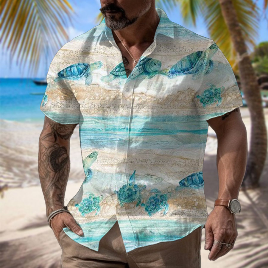Men's Summer Turtle Print Short Sleeve Shirt