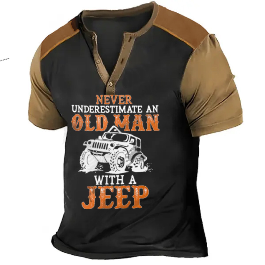 Men's T-Shirt Henley Old Man Jeep Button Ranch Color Block Summer Daily Tops