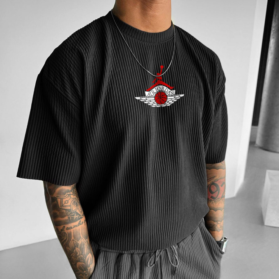 t-shirts,men's tee basketball print street style regular fit ribbed t-shirt