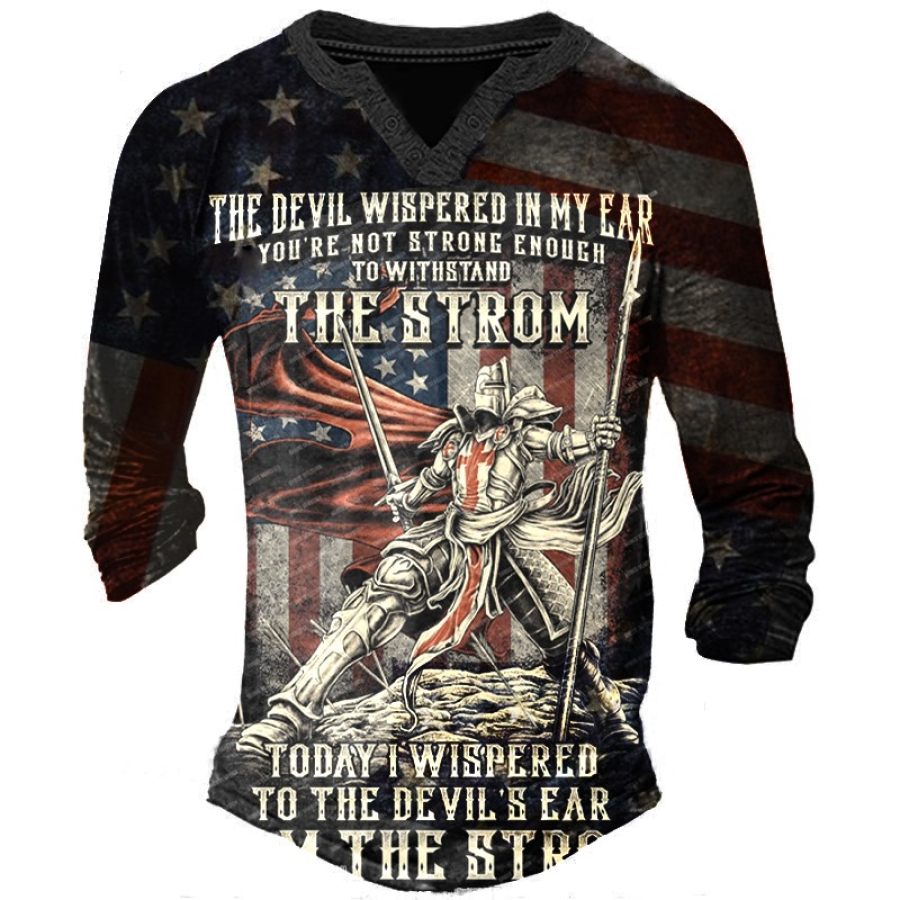 Men's Templar V-Neck Button Raglan Sleeve Print T-Shirt