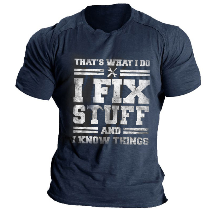 Men's That's What I Do I Fix Stuff And I Know Things Print Raglan Sleeve Cotton T-Shirt