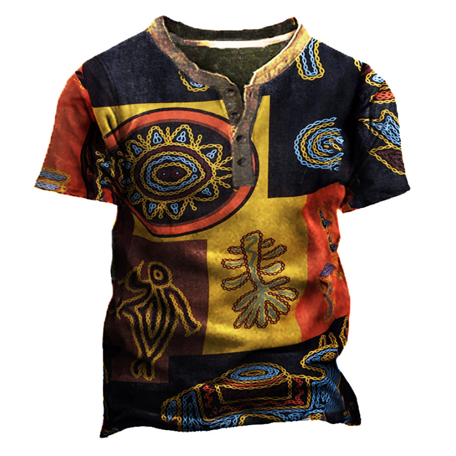 Men's Traditional Pattern Printed Long Sleeve Henley Shirt