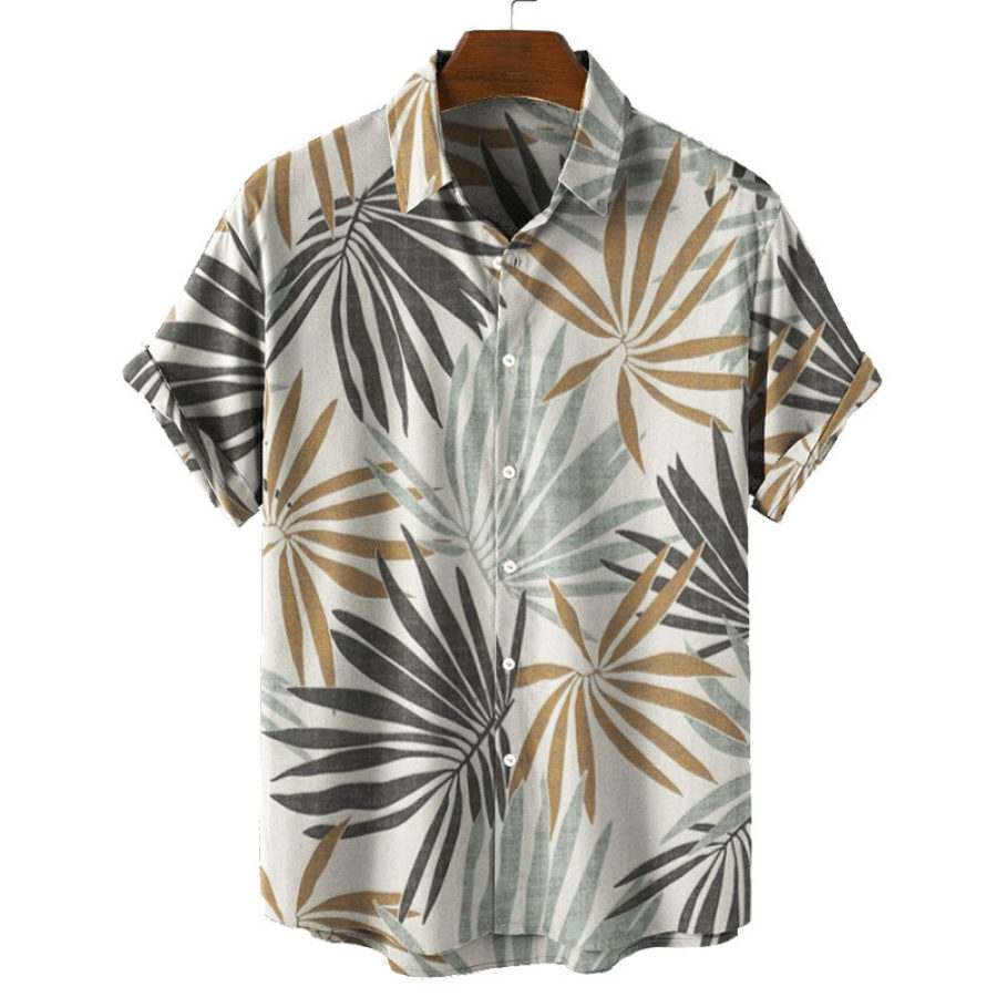 t-shirts,men's tropical leaf print button down short sleeve shirt