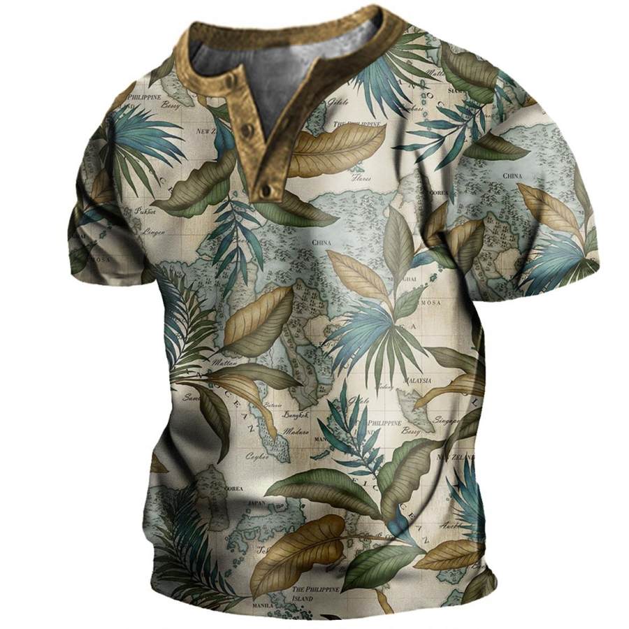 Men's Tropical Plant Map Print Henley T-Shirt