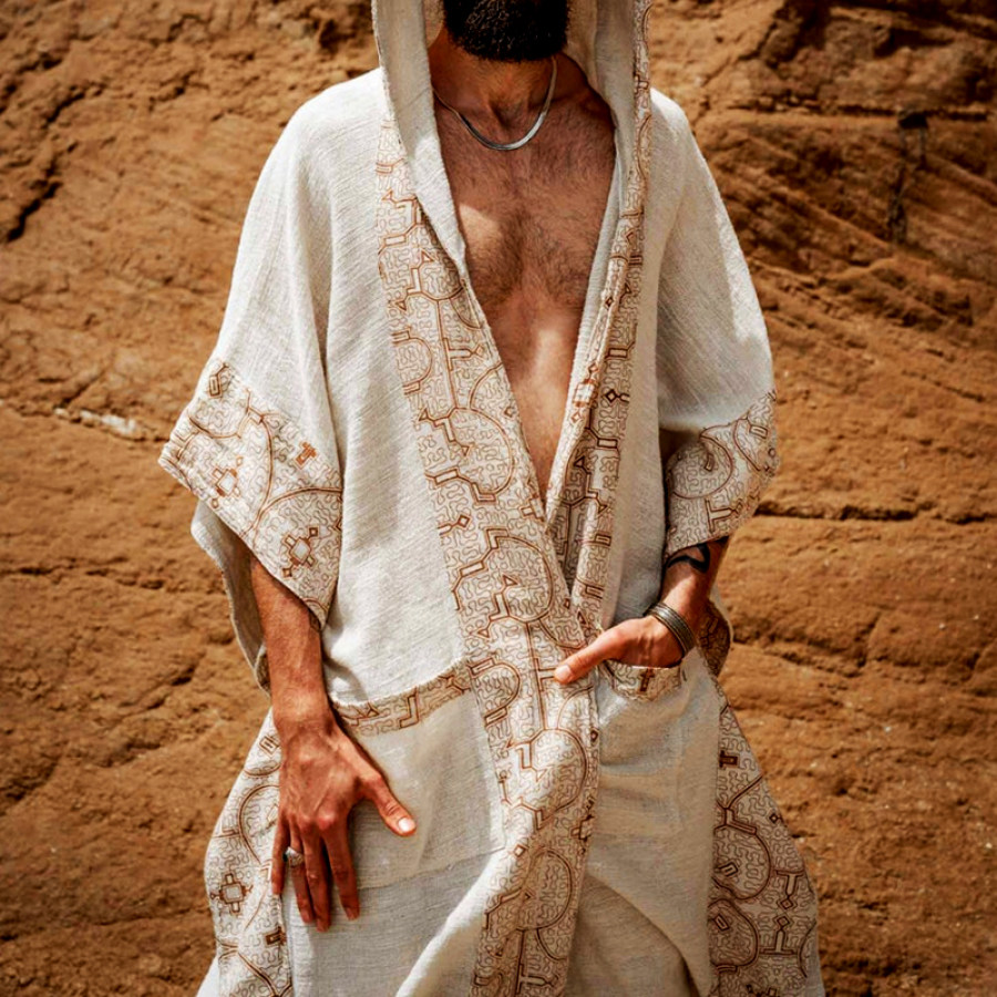 Men's Tulum Linen Holiday Long Hooded Cape Cardigan