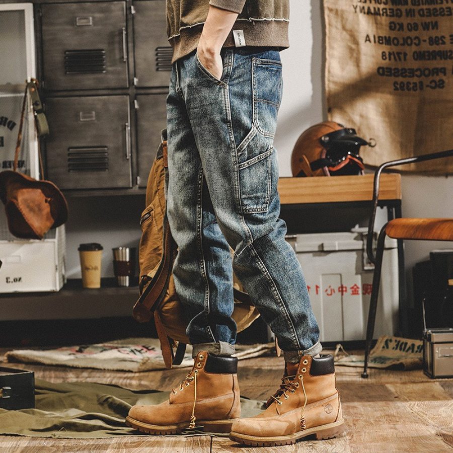 jeans,men's vintage distressed loose straight jeans