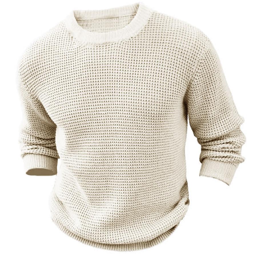 Men's Waffle Knit Round Neck Sweater Outdoor Pullover Jumper Ribbed Regular Work Daily Wear Clothing
