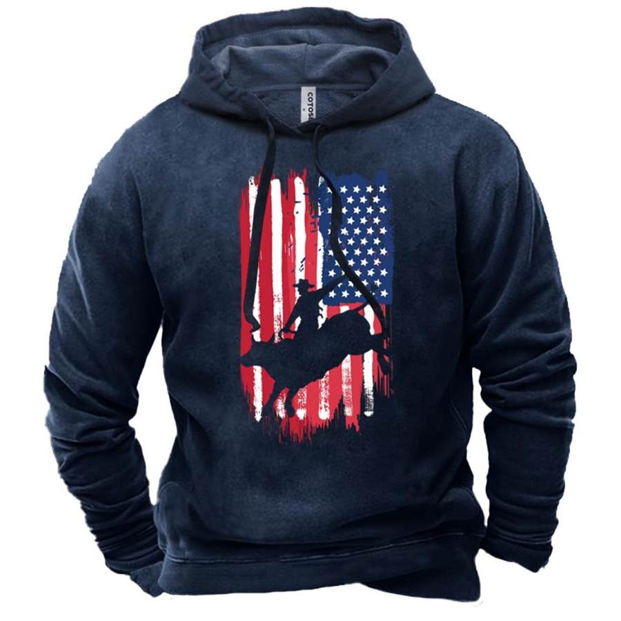 Men's Western Bull Riding Rodeo Country American Print Hoodie