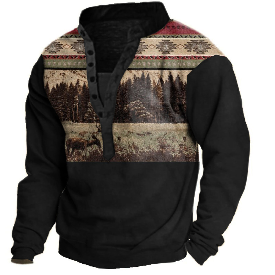Men's Winter Aztec Contrast Henley Sweatshirt