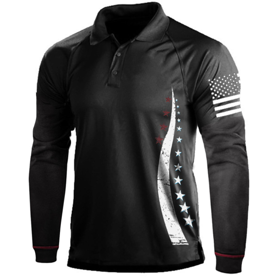 tees & shirts,men american flag raglan long sleeve polo shirt