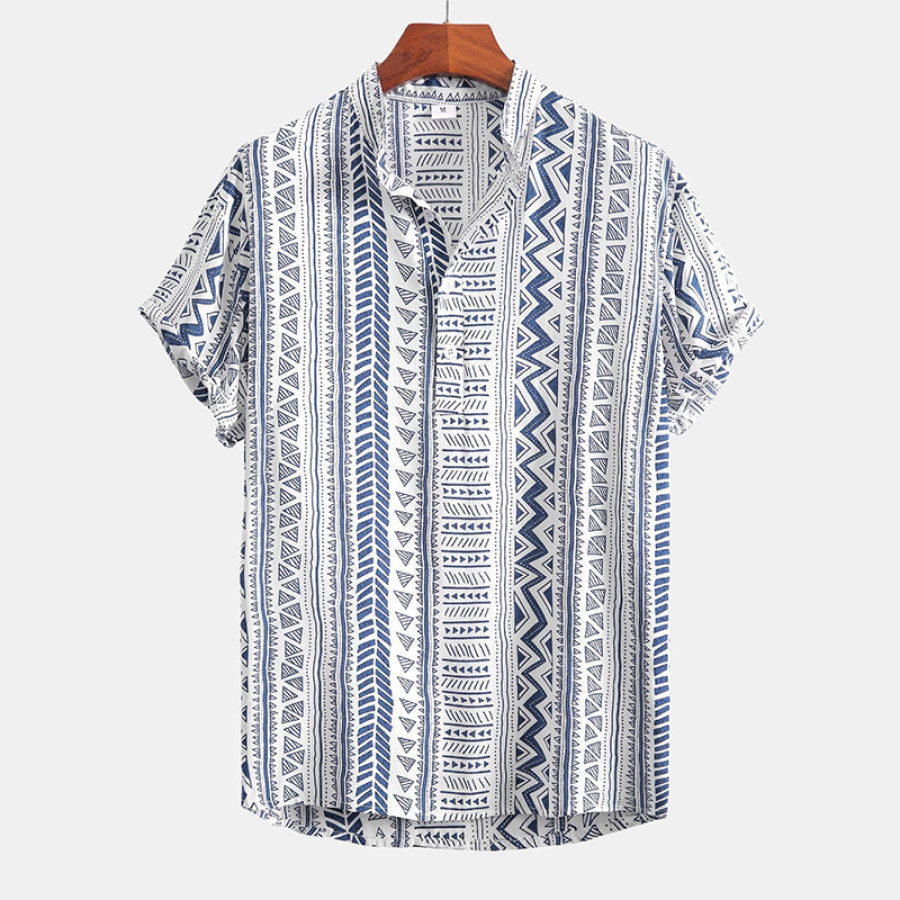 Men Ethnic Geometric Print Vacation Beach Shir