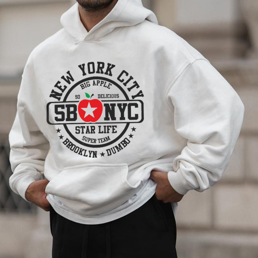 hoodies & sweatshirts,men fleece unisex oversized new york big apple hooded sweatshirt