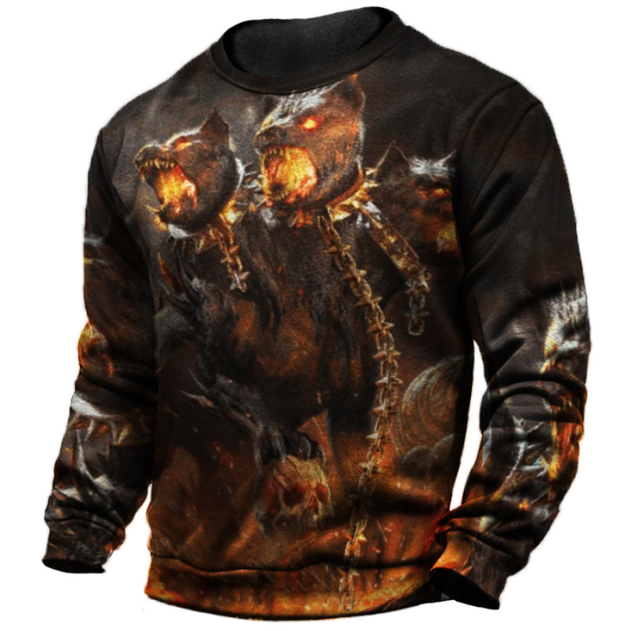 Men Skull Fire Animals Pattern Loose Sweatshirt
