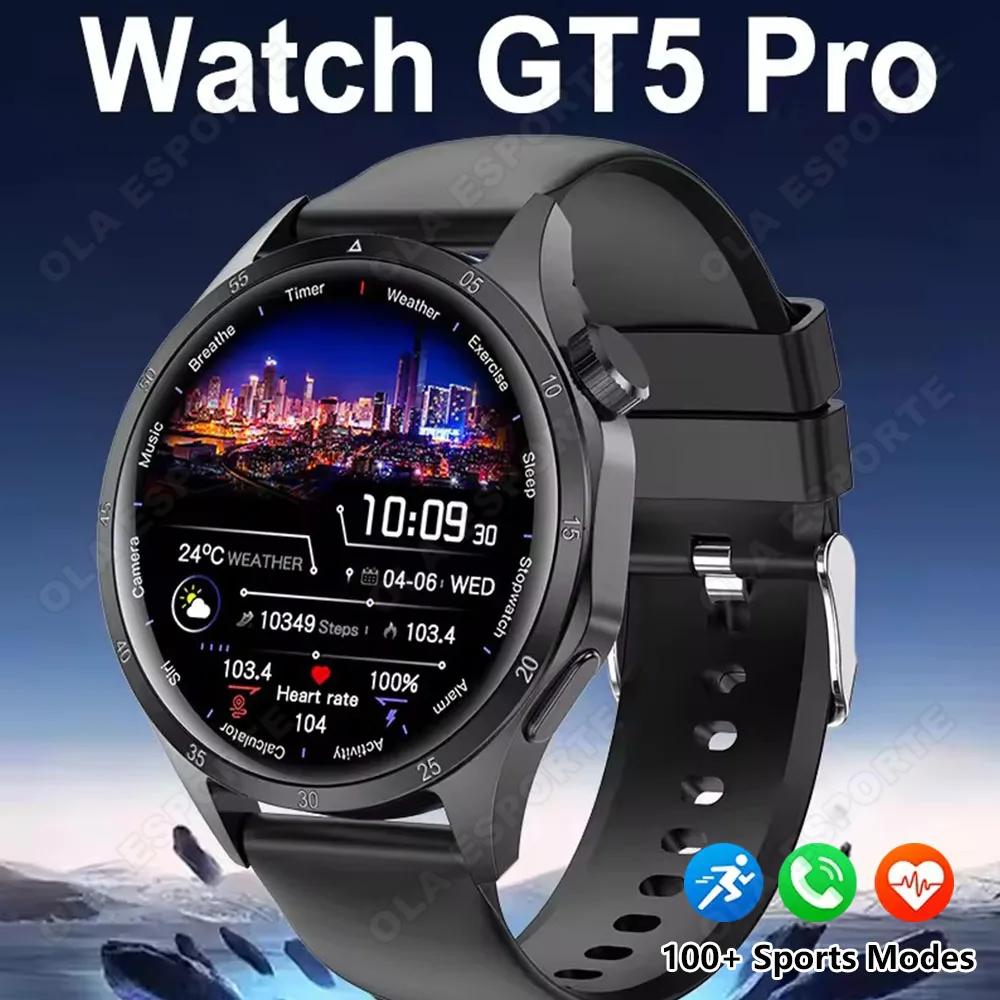 Men Smart Watch GT5 IP68 Waterproof 1.52" AMOLED Screen BT Call Message Preview Multiple Sports Modes Smartwatch Health Monitor