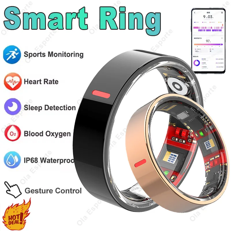 Men Women Smart Ring Health Monitoring Sport Tracker Step Count Rings 5ATM ,IP68 WaterProof Gesture Control Smartring Ring Gift