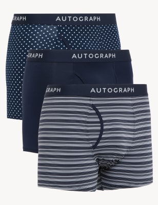 Elevate your underwear drawer with these soft trunks from our Autograph collection. They're made to a comfortable regular fit, with a classic fly-front fastening and added stretch for comfort. Autograph branding on the waistband adds a stylish flourish. The choice of designs includes stripes, polka dots and plain. n Autograph: premium investment pieces featuring contemporary cuts and refined finishing touches.