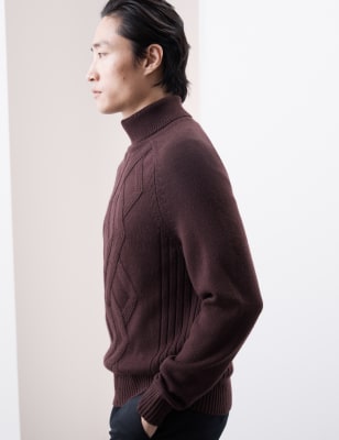 Knitted from lustrous mercerised pure merino wool for a premium soft, smooth feel, this jumper from our Autograph collection is the epitome of luxury. Its roll neck will keep you extra-cosy in cold weather. The pattern decorating the richly textured yarn gives it a refined look. Autograph: premium investment pieces featuring contemporary cuts and refined finishing touches.