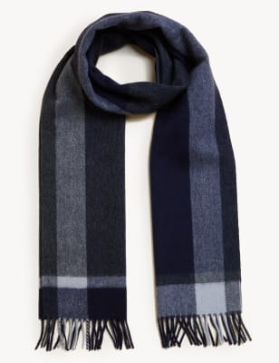 Mens Autograph Pure Wool Colour Block Scarf - Navy Mix, Navy Mix