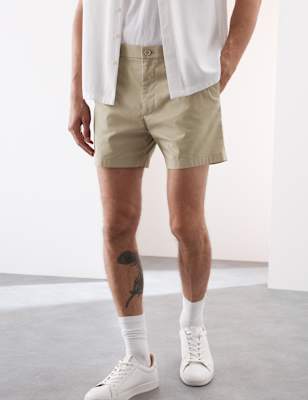 These cotton-rich chino shorts from our Autograph collection will make a versatile addition to your summer wardrobe. They're made to a regular fit with a knee-length cut, and feature a smart button and zip fastening. The fabric is lightweight for comfortable wear in warmer weather. n n Autograph: premium investment pieces featuring contemporary cuts and refined finishing touches.