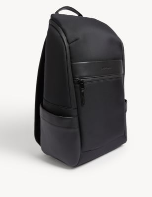 This understated backpack from our Autograph collection is perfect for the modern gent. It's designed with contrasting side pockets and a front panel stamped with branded detailing. With a zipped compartment on the front, plus inner pockets, it has plenty of space to separate your essentials. Wide straps make this comfortable for all-day wear Plus, it has a carry handle for easy transportation.n Autograph: premium investment pieces featuring contemporary cuts and refined finishing touches.