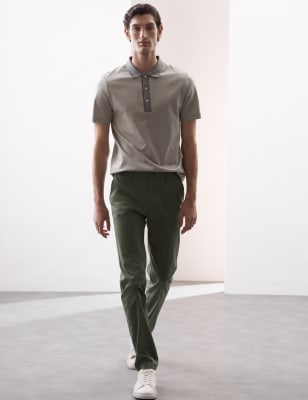 These cotton-rich chinos from our Autograph collection will make a versatile addition to your smart-casual wardrobe. They're made to a sleek slim fit, with a button and zip fastening. The super-lightweight fabric ensures easy wear, while added stretch provides freedom of movement. n n Autograph: premium investment pieces featuring contemporary cuts and refined finishing touches.
