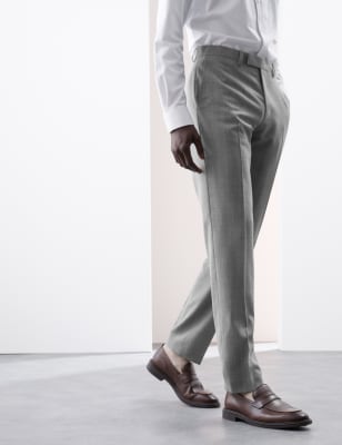 These pure wool suit trousers from our Autograph collection will make a refined addition to your formal wardrobe. They're tailored in a smart flat front style, with a neat hook bar and zip fastening. A check weave in the fabric creates a subtle textured look, while side pockets add a handy touch.nnAutograph: premium investment pieces featuring contemporary cuts and refined finishing touches.